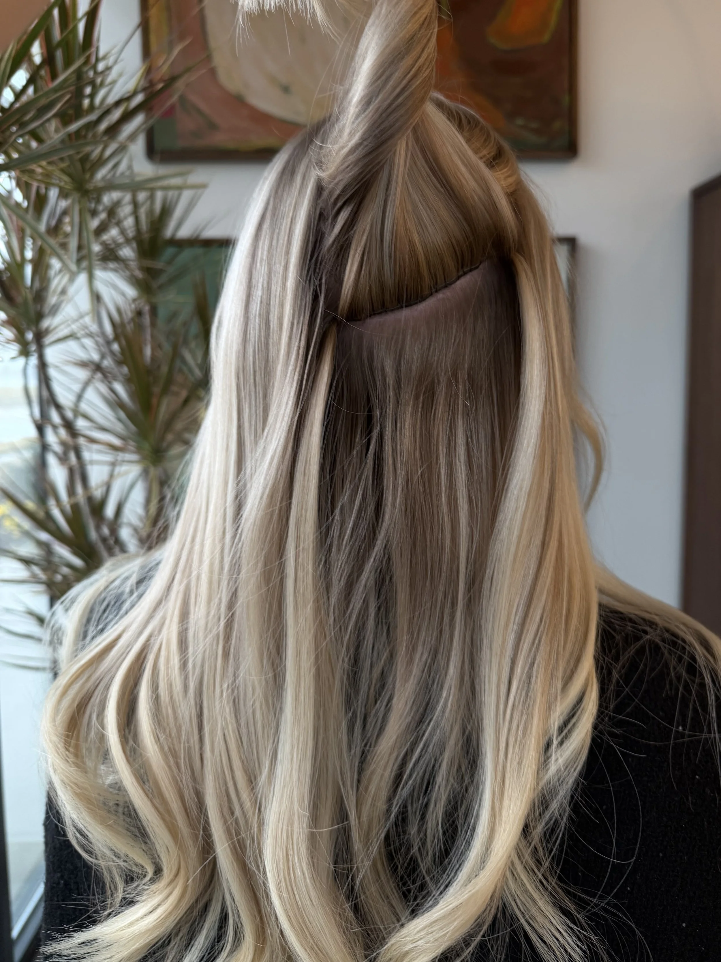 Hand-Tied Extensions pricing vary from person to person due to extensions being so customizable. For an accurate quote you can book a complimentary in person consultation where I color match your hair and walk you through the extension process and pricing in depth.